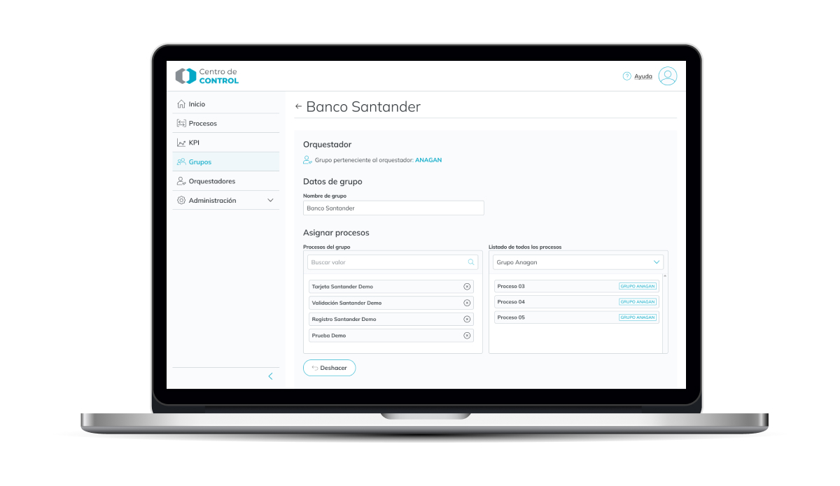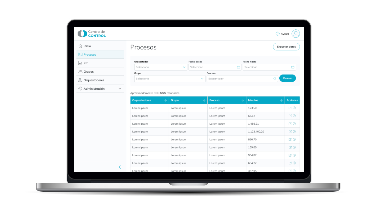 La razón de ser del Centro de Control es mejorar el control sobre las herramientas de automatización y la recopilación de datos que se manejan, ser capaces de dar una vista global y personalizada a los clientes tanto internos como externos y aumentar las funcionalidades de estas herramientas para ser capaces de llegar a una red de robots conectados y a una Hiperautomatización Integral Real.