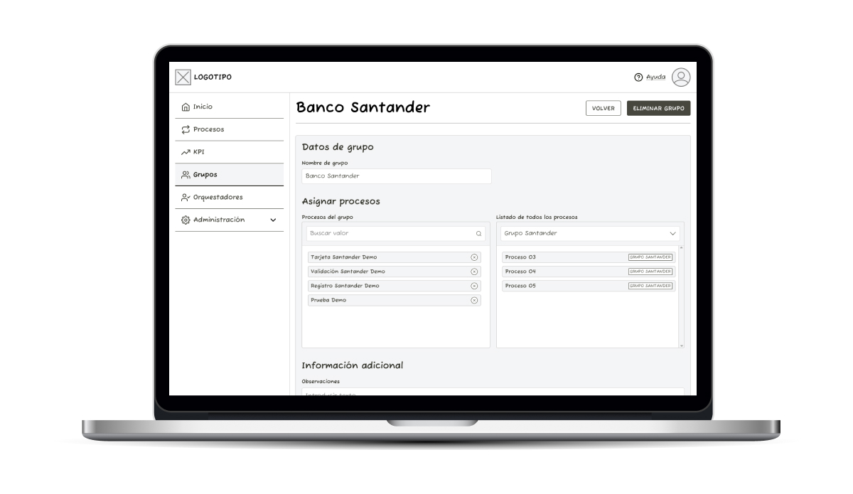 Se realizaron diferentes pruebas de validación de usuarios y creación de wireframes. Una vez aprobado, definiríamos la línea gráfica, las interacciones y los prototipos de alta fidelidad.