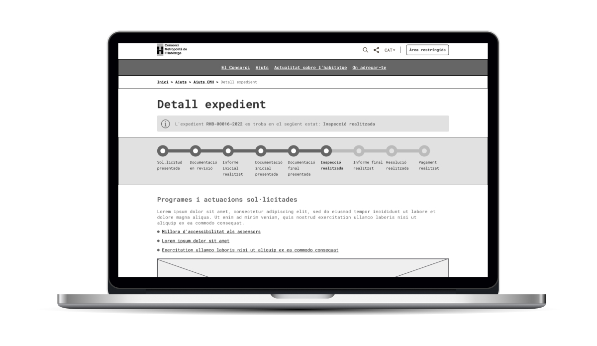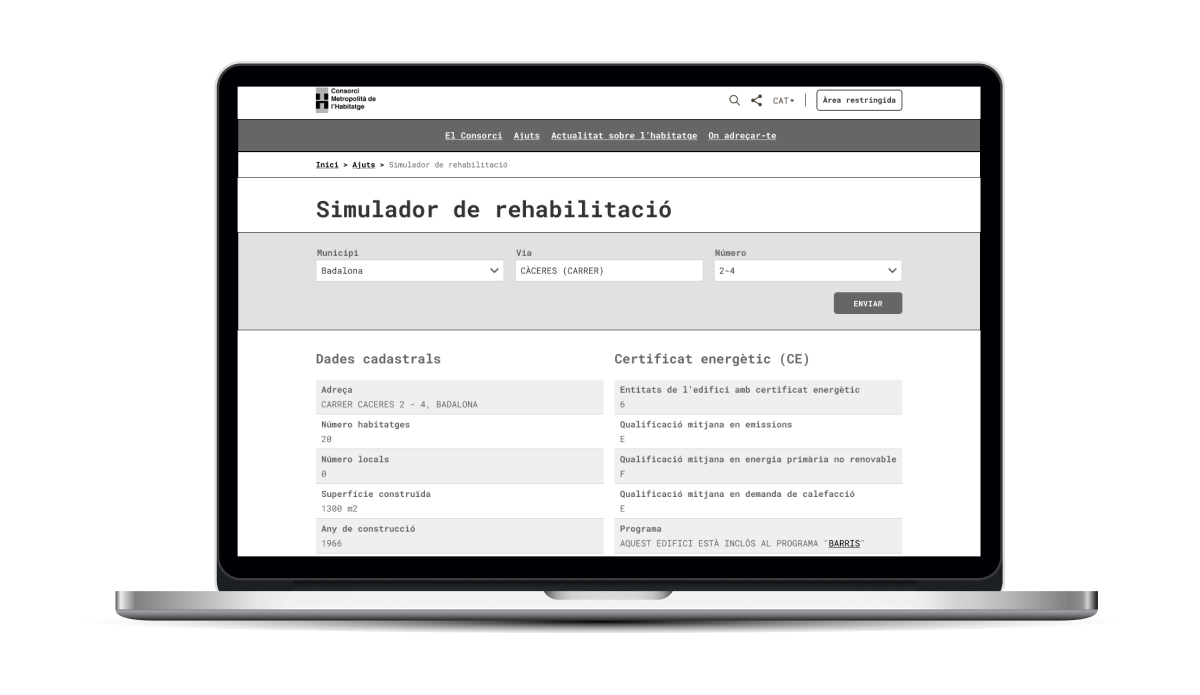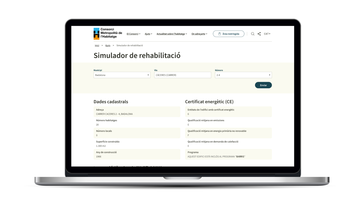 Nace de la necesidad de implementar el proyecto Nueva web del Coonsorci Metropolità de l'Habitatge, con el objetivo de que los ciudadanos/as, las comunidades de propietarios y/o los profesionales que la consulten puedan obtener una información clara de los diferentes programas, de su evolución y disponer de herramientas que permitan incentivar y orientar actuaciones de rehabilitación.