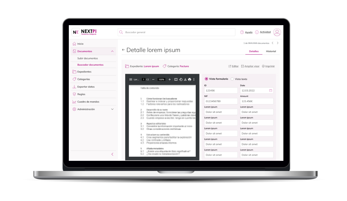 Nace de la necesidad de crear una plataforma dotada de inteligencia artificial dónde el cliente pueda visualizar el estado de la documentación que aportan a través de diversidad de procesos intrínsecos y poder modificar datos, modificar o ajustar reglas de negocio y gestión continua, como las necesidades que puedan requerir de manera customizable, garantizando la calidad del dato.